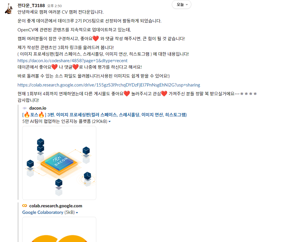 - 콘텐츠 홍보! (부스트 캠프 분들께 알려 좋아요를 요청해봤다.)