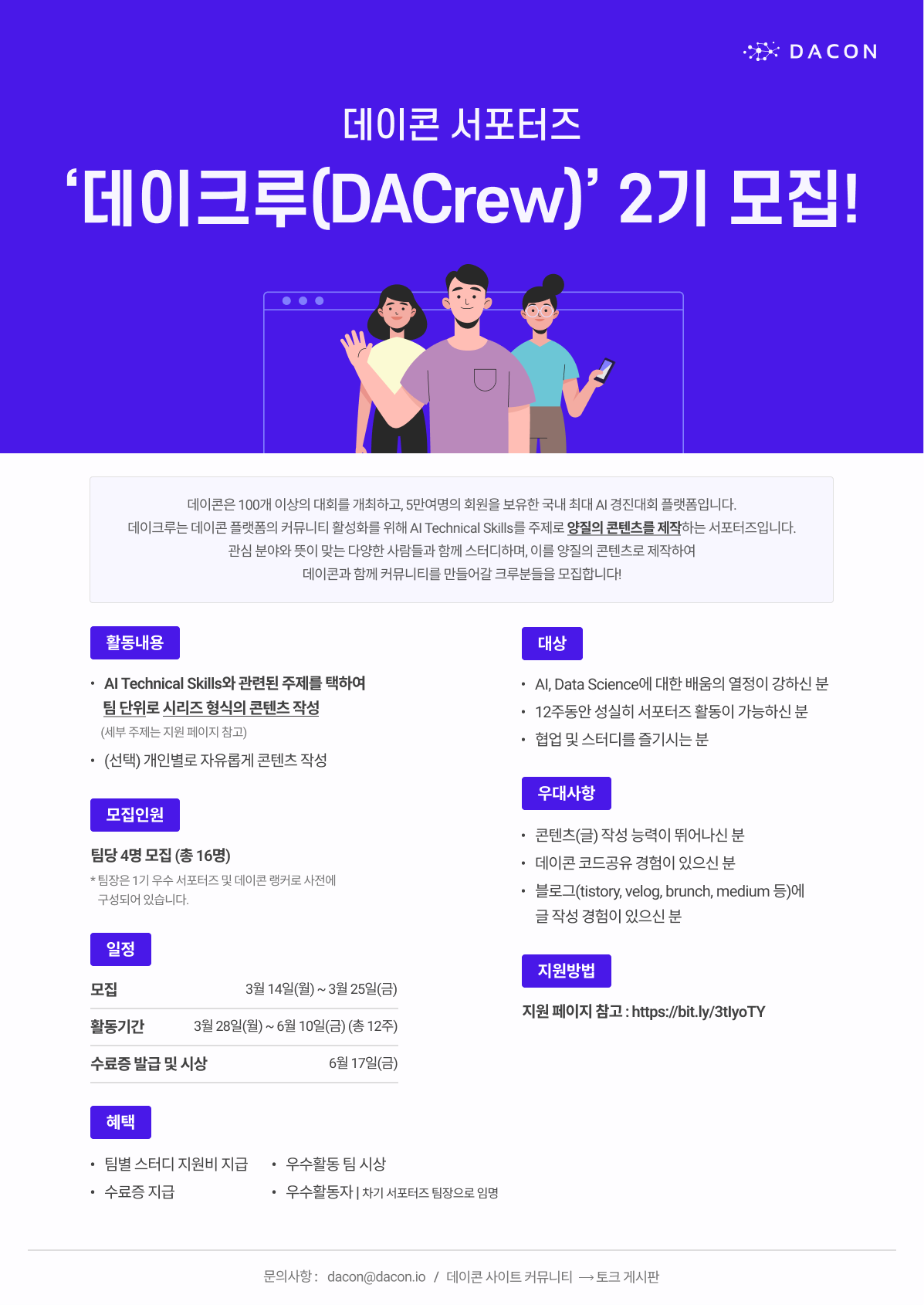 | [Dacon] 데이크루 2기 3주차 활동 일지 (0) | 2022.04.25 |