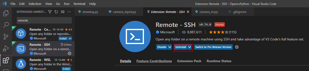 Remote라고 입력하면 Remote-SSH가 검색된다.