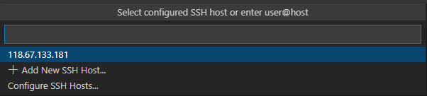 명령 팔레트를 통해 실행시키면 등록된 호스트 리스트들이 나오고, 그 중 연결하고자 하는 호스트를 선택한다.