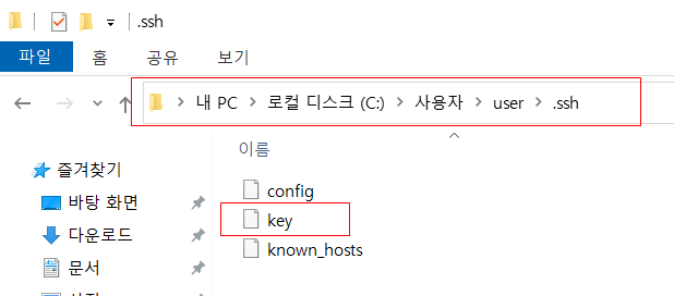 서버에서 제공한 key 파일을 C:\Users\사용자이름\.ssh 폴더에 넣습니다.