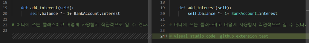 다음은 테스트를 위해 주석을 한줄 추가 했다.