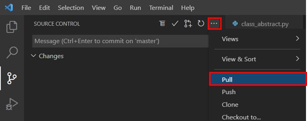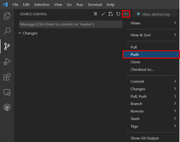 SOURCE CONTROL 우측 끝에 확장 버튼을 누르면 Push 가 나오는데,