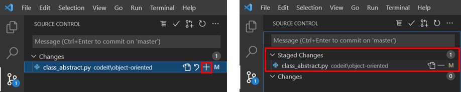 수정한 파일 옆의 + 버튼을 누르면 git add가 된다!