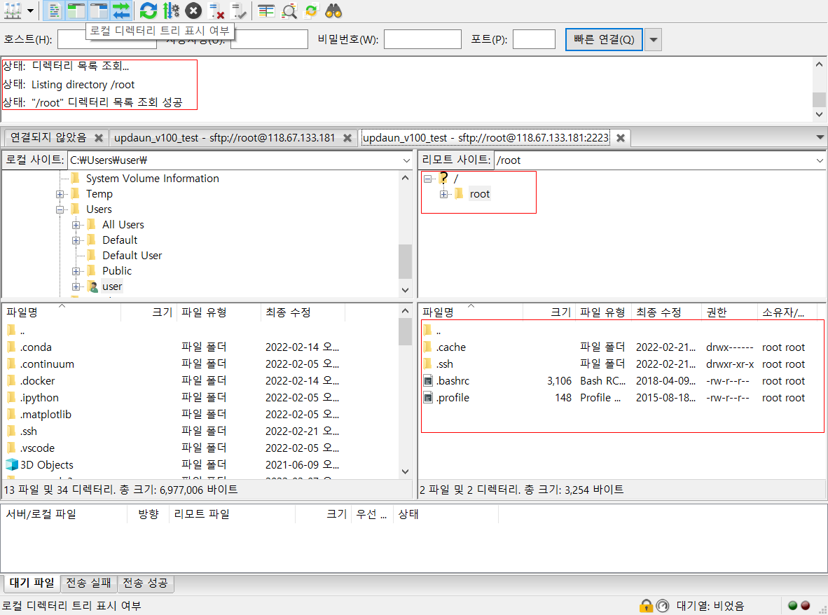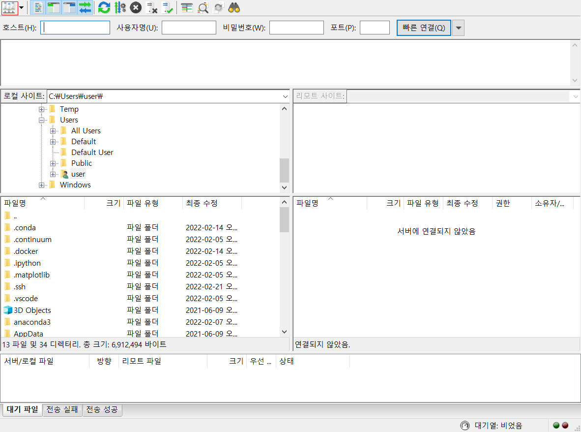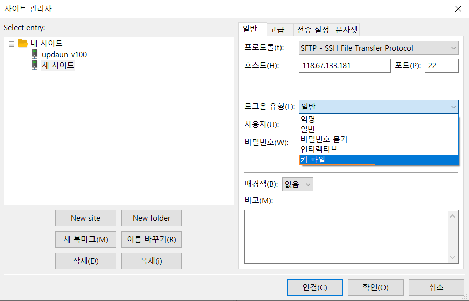 이제 원하는 사이트를 클릭하고 연결 버튼으로 SFTP 접속 하면 된다.