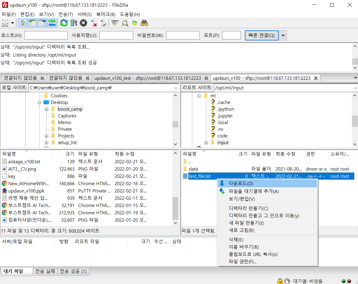 FileZillra의 SFTP는 서버에 작업물을 올리는 작업에 사용할 수 있을 것이다.