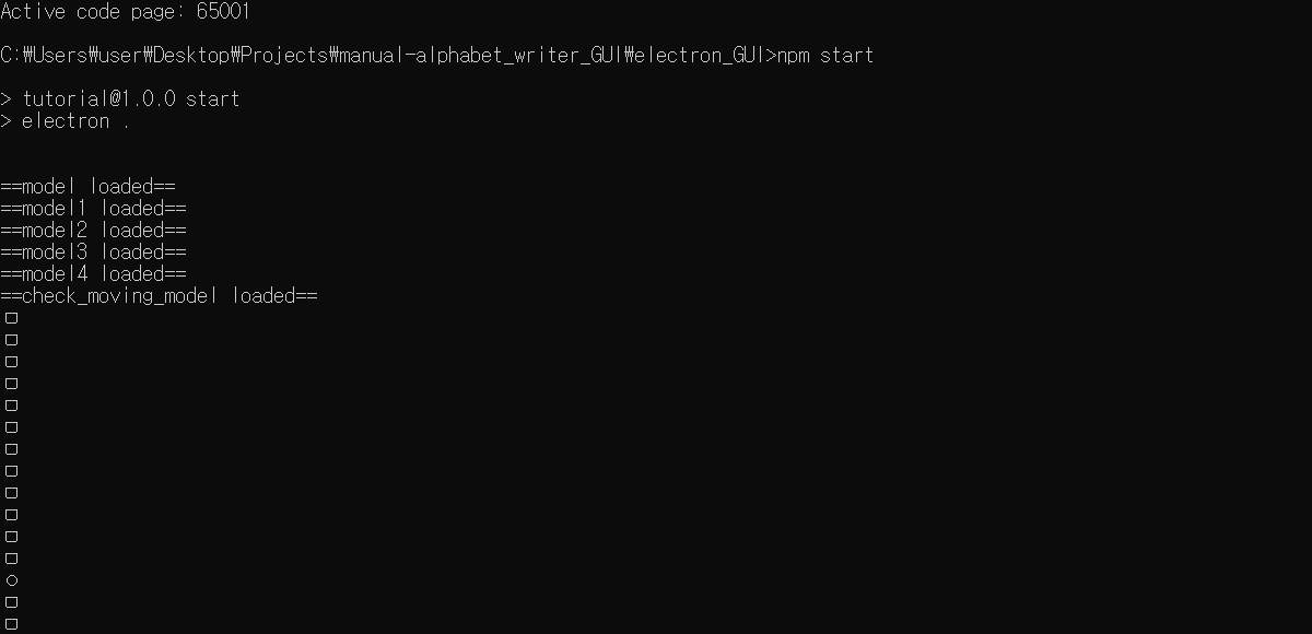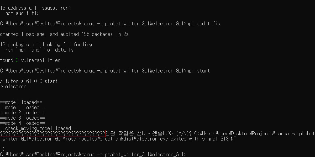 해당 명령어를 electron 앱 시작 명령어를 치는 cmd 창에서 입력하면 된다!