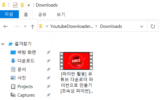 실행 파일이 있는 폴더에 'Downloads'라는 폴더가 생기고, 그 안에 동영상이 저장된다!