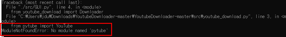 1. ModuleNotFoundError : No module namd 'pytube'
